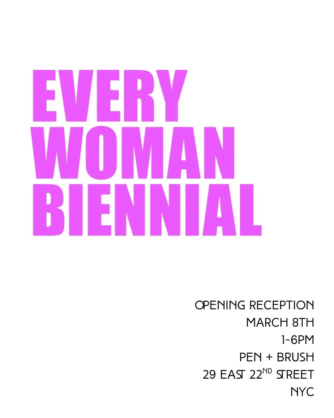 Every Woman Biennial Sunday, March 8, 2026 1:30 PM 13:30 Saturday, April 11, 2026 2:30 PM 14:30 Pen + Brush 29 East 22nd Street New York, NY, 10010 United States (map) Google Calendar ICS
